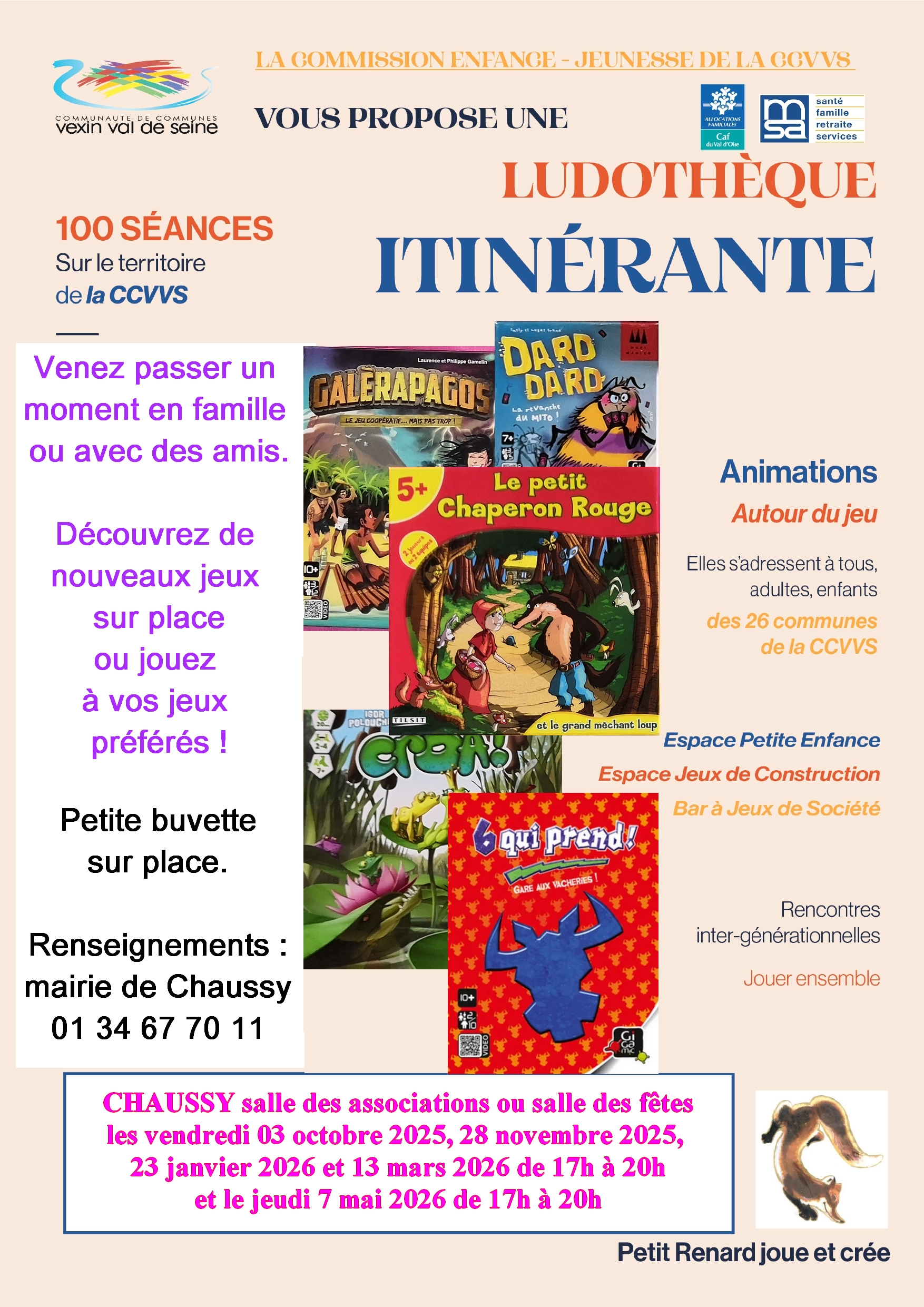 La ludothèque itinérante s’installe à CHAUSSY les :