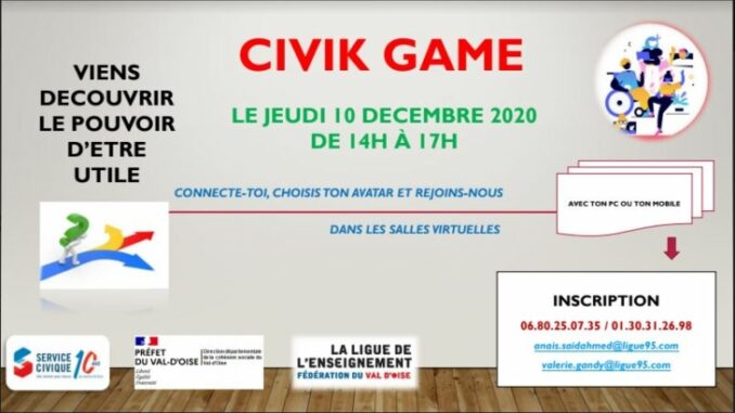A l’occasion des 10 ans du service civique, la Ligue de l’enseignement du Val d’Oise, en partenariat avec la Direction Départementale de la Cohésion Sociale, organise une manifestation virtuelle intitulée « Civik Game » qui se déroulera […]