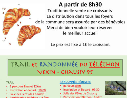 Comme chaque année, Chaussy participe au Téléthon ce 4 décembre. A partir de 08:30, sera organisée la traditionnelle vente de croissants. Des bénévoles viendront dans chaque foyer pour proposer des viennoiseries, vendues 1 € pièce. […]